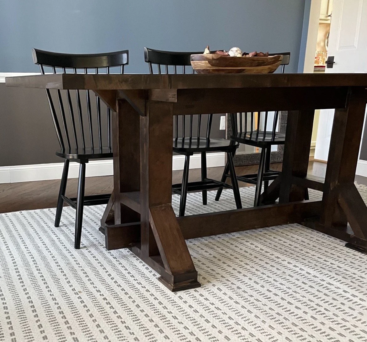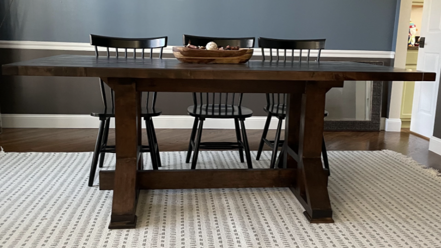 The Marquette Table brings together modern lines, structural balance, and the warmth of solid hardwood. Its distinctive trestle-style base—engineered with heavy, interlocking joinery—creates a strong architectural presence while remaining elegant and understated. This design has been built for both residential dining rooms and high-traffic commercial environments, including restaurant installations where durability and stability are paramount.