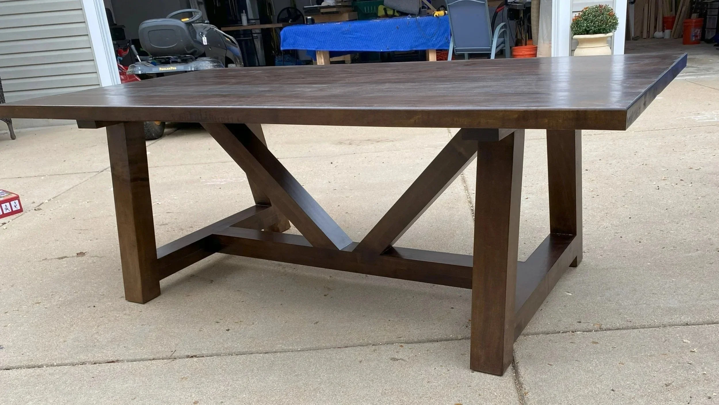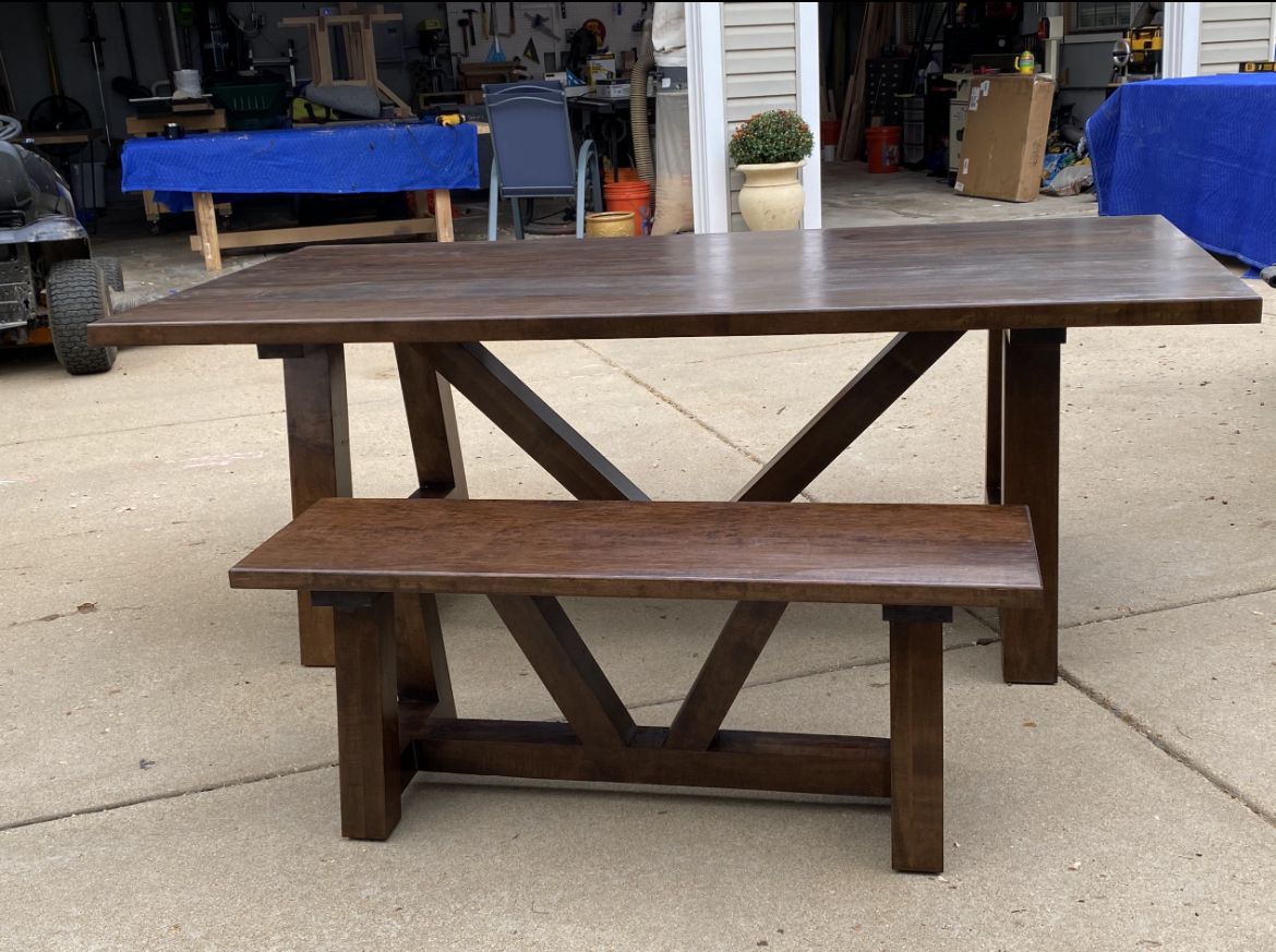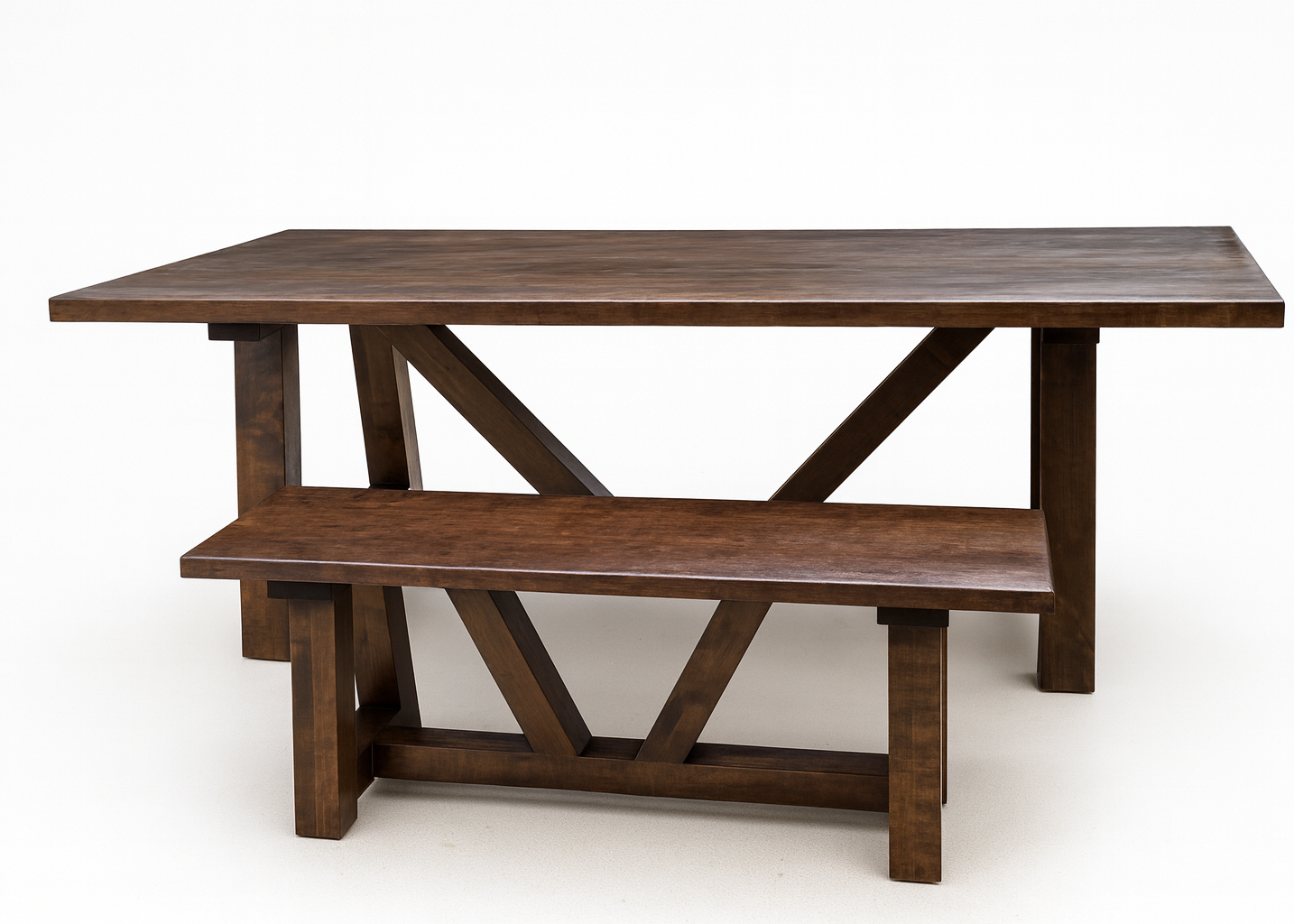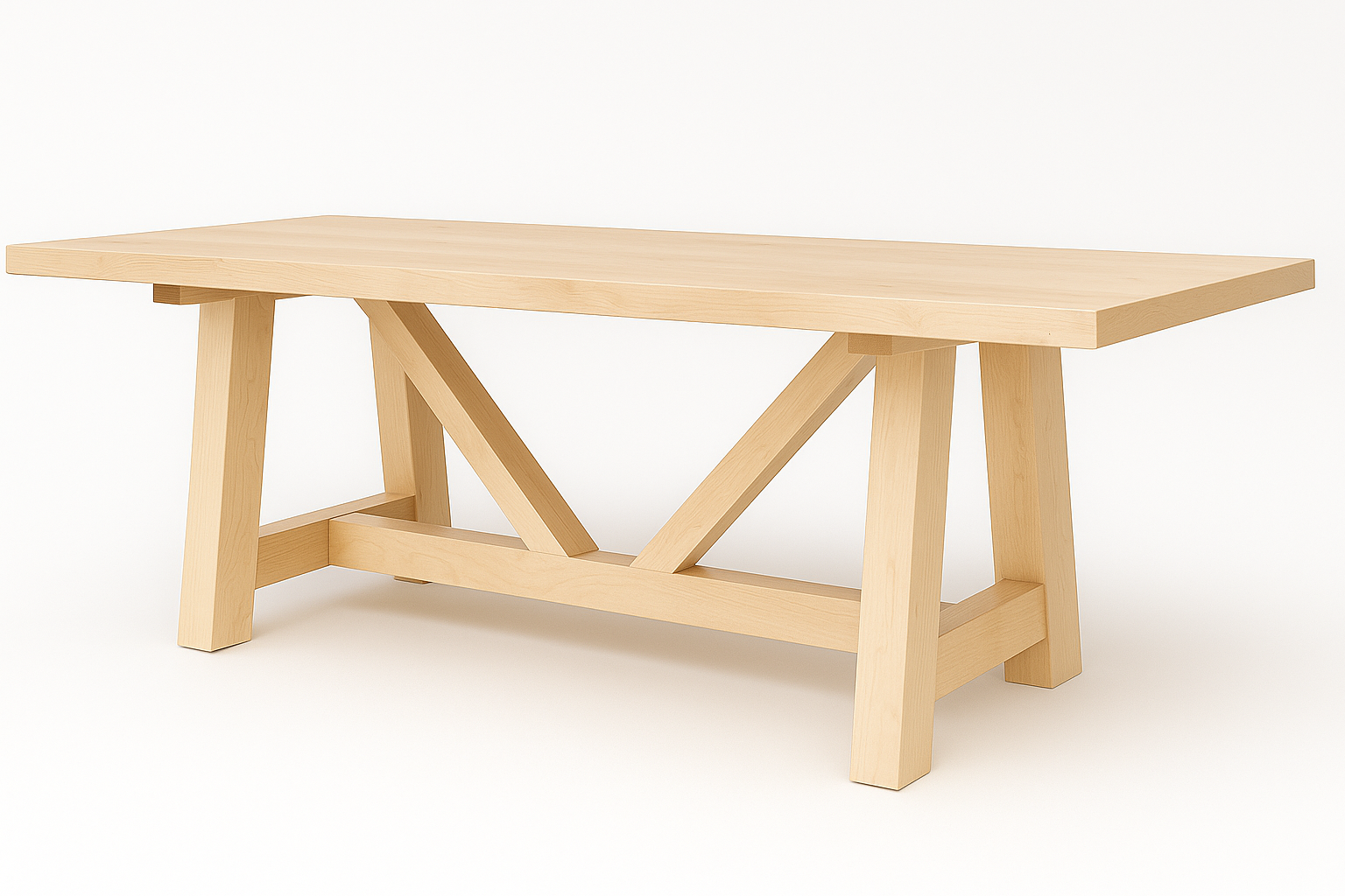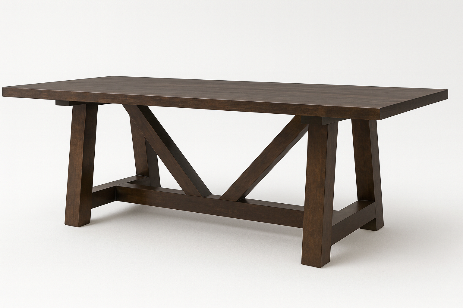 The Victor Table is a bold, architectural piece built for spaces that appreciate clean lines, strong geometry, and the warmth of solid hardwood. Its signature V-shaped supports and oversized trestle base create a stunning silhouette—instantly recognizable, endlessly functional, and designed to last for generations.